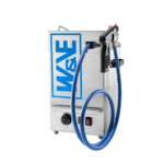 Een type tafelmodel jelly spuitmachine van W en vE met een uniek gesloten verwarmingssysteem. Deze machine is geheel in het kader van de hygiënische HACCP-normen gebouwd. De machine heeft geen interne container en is bijzonder geschikt voor het verwerken van gelei direct uit de Bag in Box. Het spuitpistool hangt niet in het water, maar wordt elektrisch verwarmd.